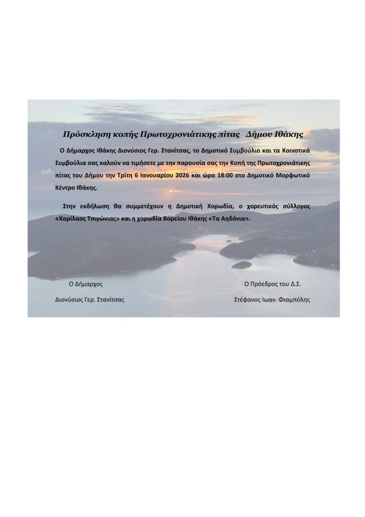 ΠΡΟΣΚΛΗΣΗ ΠΡΩΤΟΧΡΟΝΙΑΤΙΚΗΣ ΠΙΤΑΣ ΔΗΜΟΥ ΙΘΑΚΗΣ